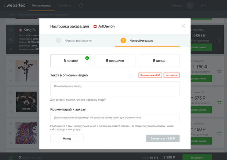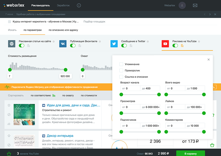 2. Выберите площадки для размещения рекламы